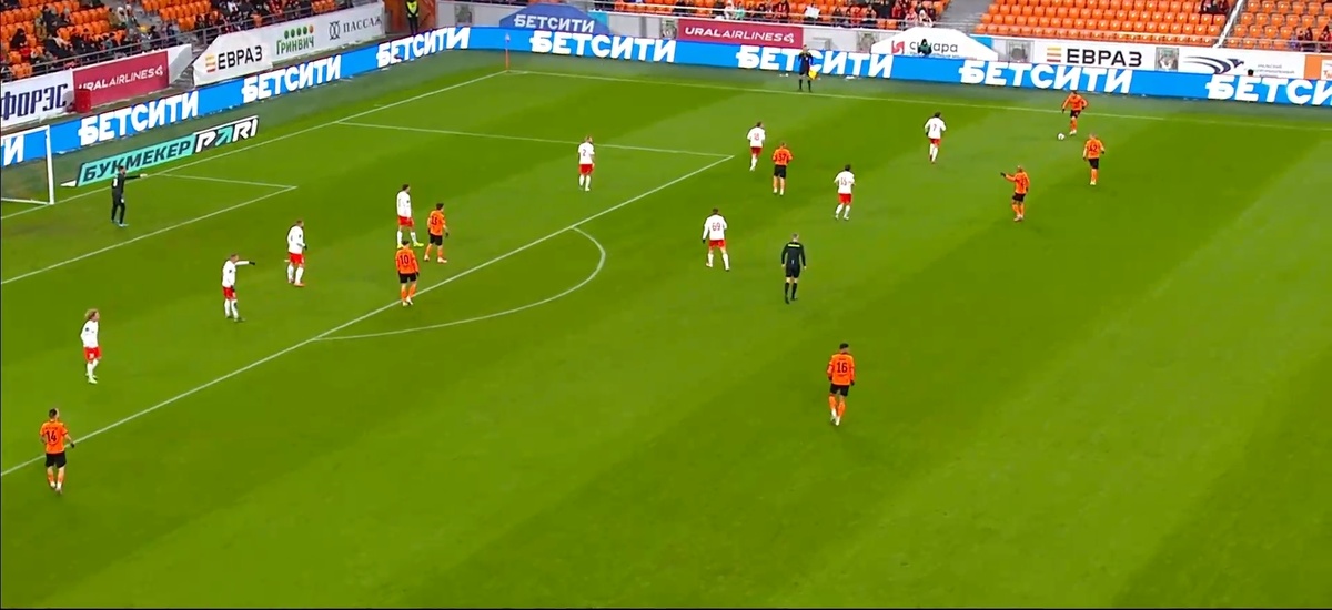 Выразить схему красно-белых в конкретных цифрах, наверное, будет не совсем корректно: расстановка была по-хорошему «ртутна» и подстраивалась под конкретные заходы соперника. #4 Супранович то и дело поднимался в опорную зону – становясь первым «волнорезом» для разбивания чужих атак. Порой формальную защитную «пятёрку» ломал и #18 Игнатьев, поднимаясь выше по флангу: #2 Тарасов в таком случае смещался левее, как и весь оборонительный блок. Ну, а #78 Киселёв вообще – исключая последние минуты, когда наша команда всё-таки прочно застегнулась на все пуговицы – приличную часть матча провёл ближе к атаке, пытаясь задвинуть опасную уральскую пару Итало – Железнов. Так или иначе, наличие у «Спартака» большого числа квалифицированных разрушителей – стало именно тем случаем, когда количество всё-таки переросло в качество. Длинными отрезками второго тайма «Урал» переходил на эдакое «стерильное владение», и вскрыть наши редуты толком не мог (хотя неприятные исключения всё же случались – но о них позже). Так что, учитывая поставленный активный прессинг, исход матча можно назвать тренерской победой штаба костромичей. Что говорите, «Какой победой? Ничья же…». А на вкус – почти как победа…